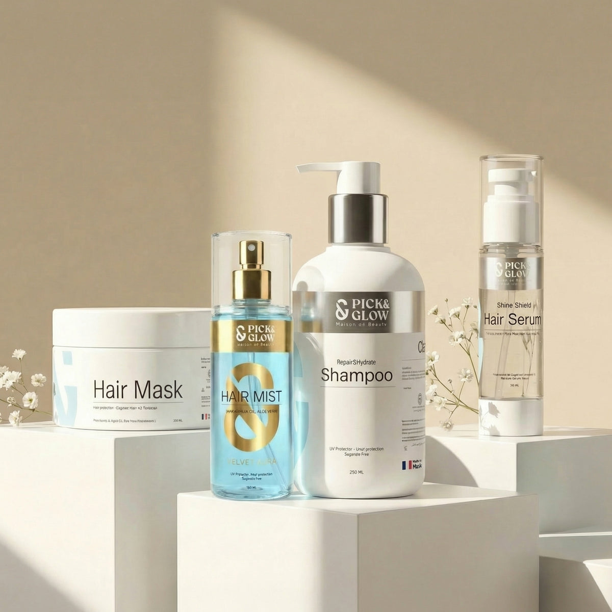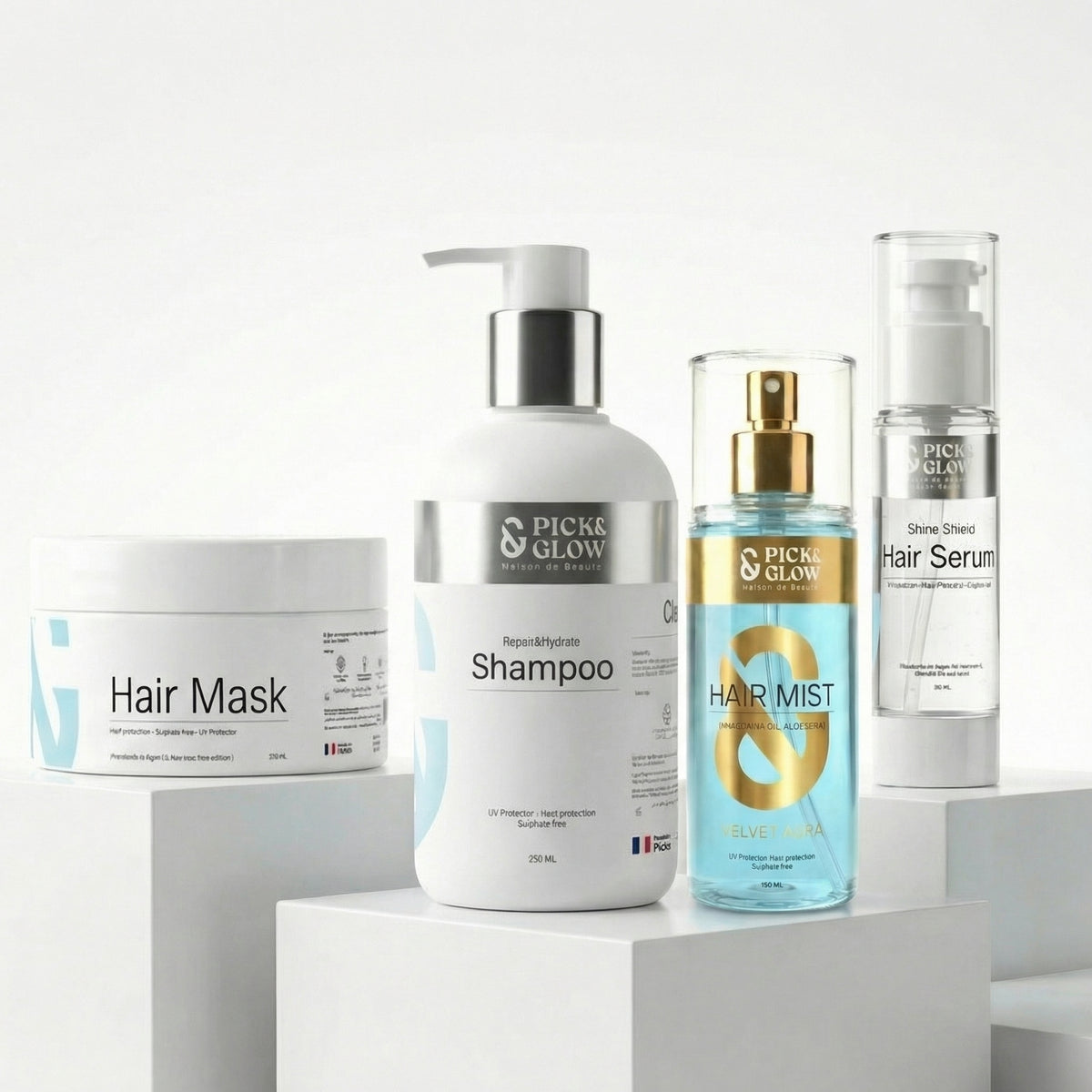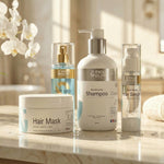 A complete 4-step hair repair routine designed to cleanse, strengthen, smooth frizz, and maintain shine for healthier, more polished hair.